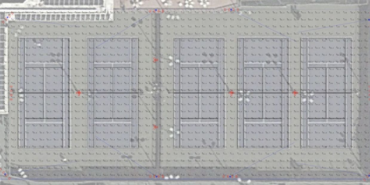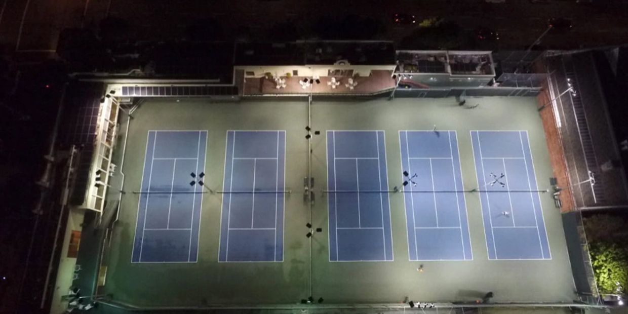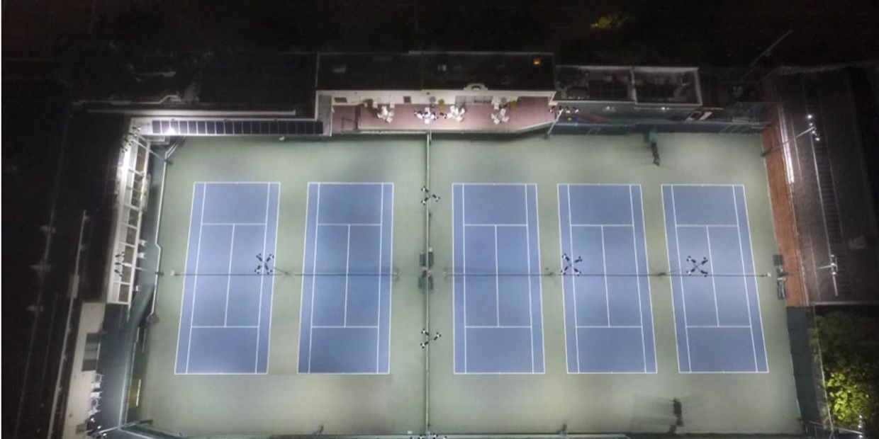 This Areial Photograph shows the Outstanding Light Saturation on the “Test” Courts 4 & 5 with Outstanding Light Uniformity.